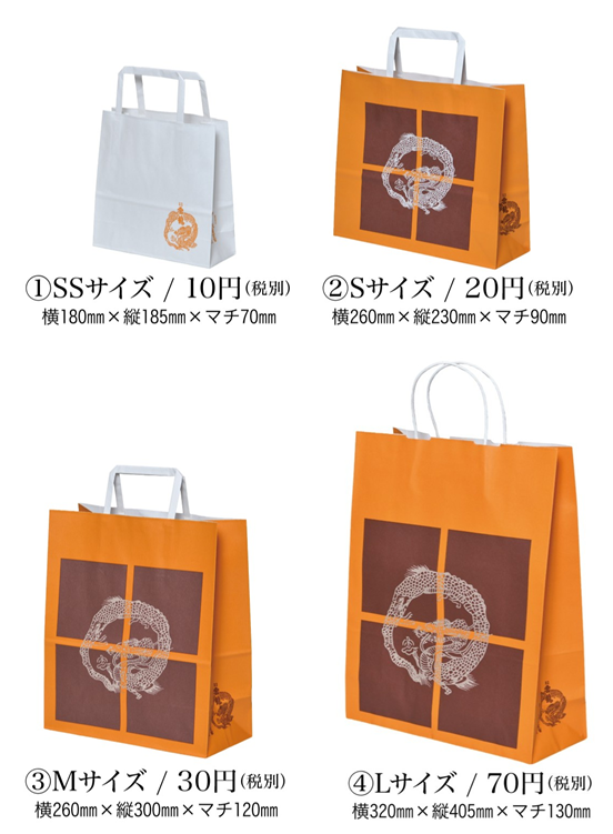 雲龍ロゴ入りの俵屋吉富オリジナル手提げ袋は有料とさせていただきます。